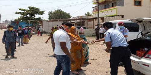 In lockdown daily Grocery & Food pockets distribution to Employees ,Police & migrant people respectively